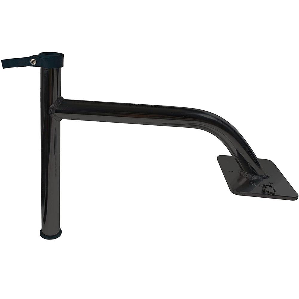 With a quick pull of the plunger pin and a short twist, the bracket can be removed leaving only the mounting plate for a clean, obstacle-free deck. Includes integrated O-rings eliminating the need for sealant. Available in 3" or 6" rise for safe and easy gunnel clearance. Clear anodized or black powder coat. Mounting hardware included.