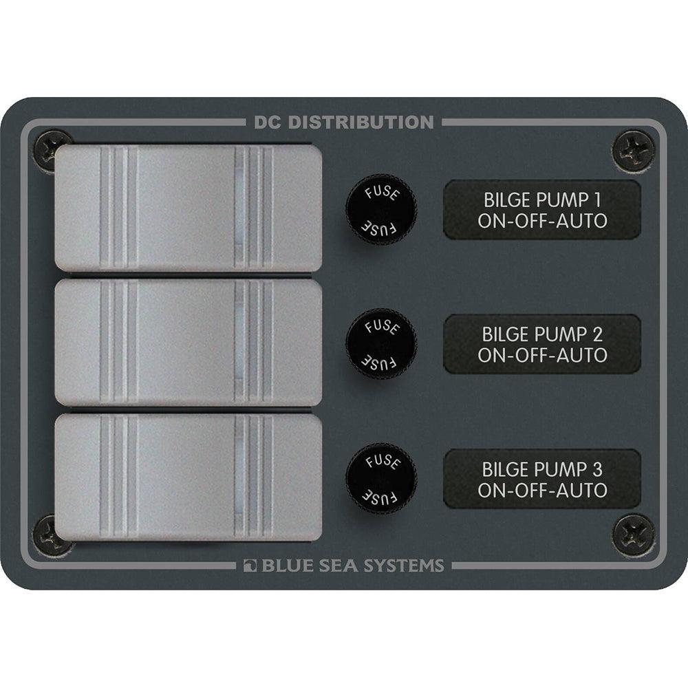 Blue Sea Systems water resistant 12/24 Volt DC Bilge Pump control panel with Contura rocker switch and fuse holder for fuses up to 20amp