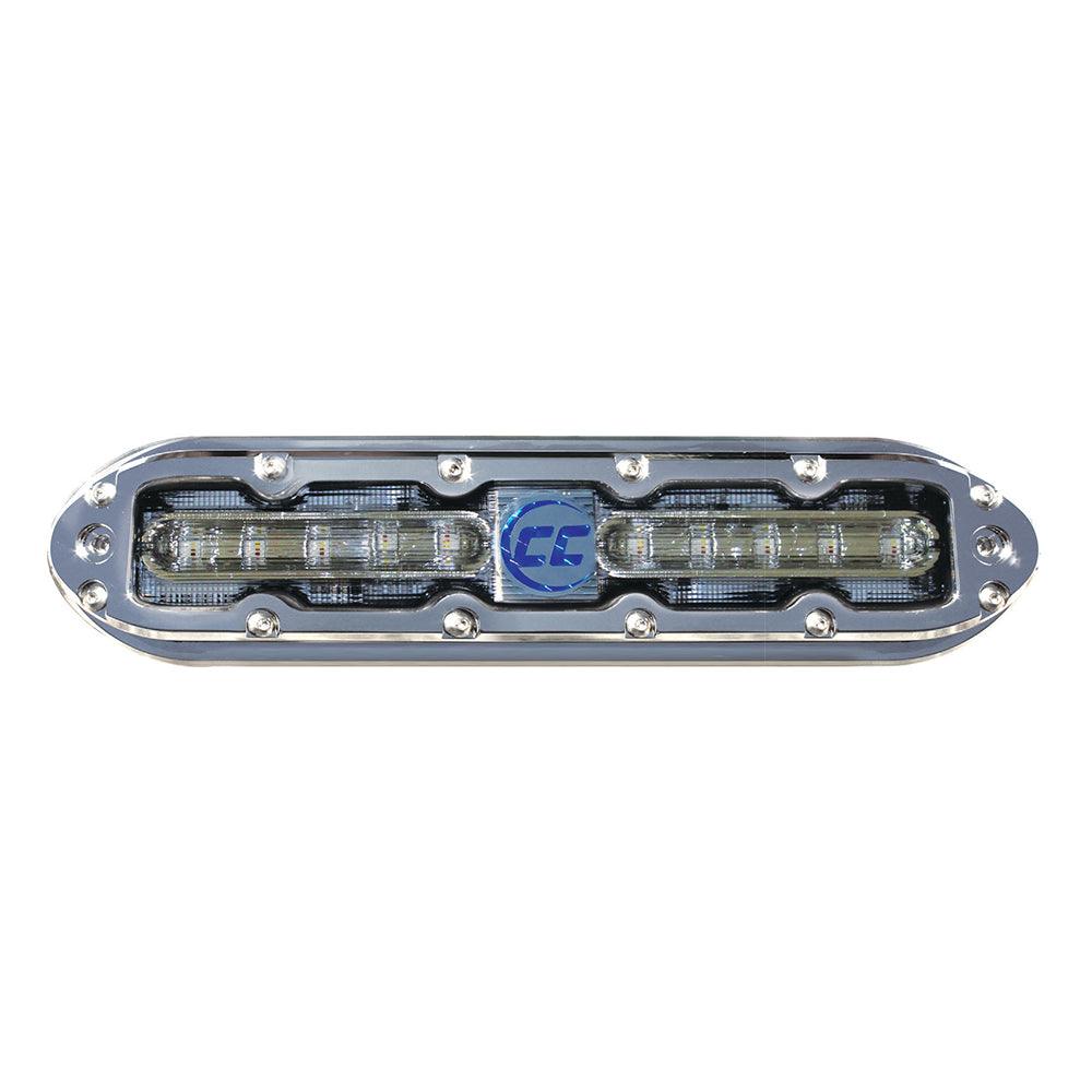 The SCM-10-EXT-CC extended color underwater light provides your vessel with 42 watts of intense LED lighting. Easily switch between 12 standard colors or use an or use a Shadow-NET® enabled product to enjoy unlimited colors. The SCM-10-EXT-CC’s low profi le design allows for many mounting locations. The unique stainless steel housing compliments the look of any trailer or lift kept boat.
