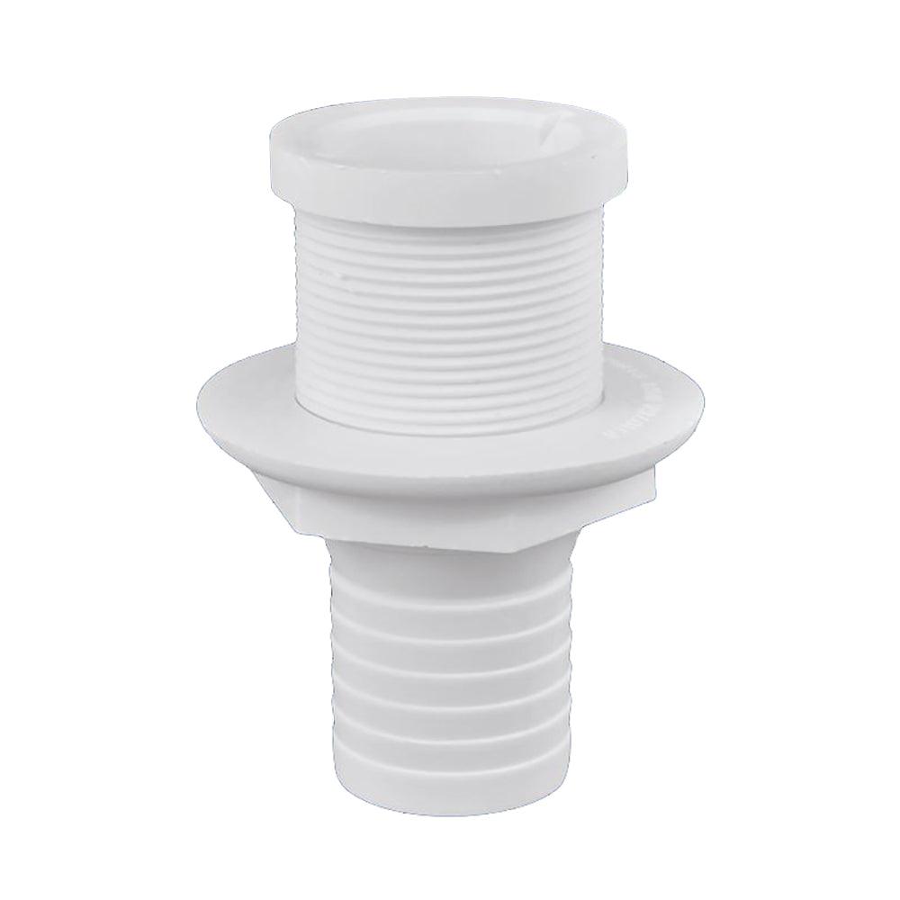For use with 1-1/2" I.D. hose as part of a self-bailing cockpit system. Features short stem and narrow flange for installing through cockpits. Polypropylene construction.