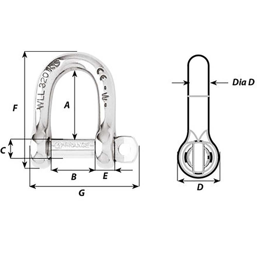 Self-Locking D Shackle - Diameter 10mm - 13/32"