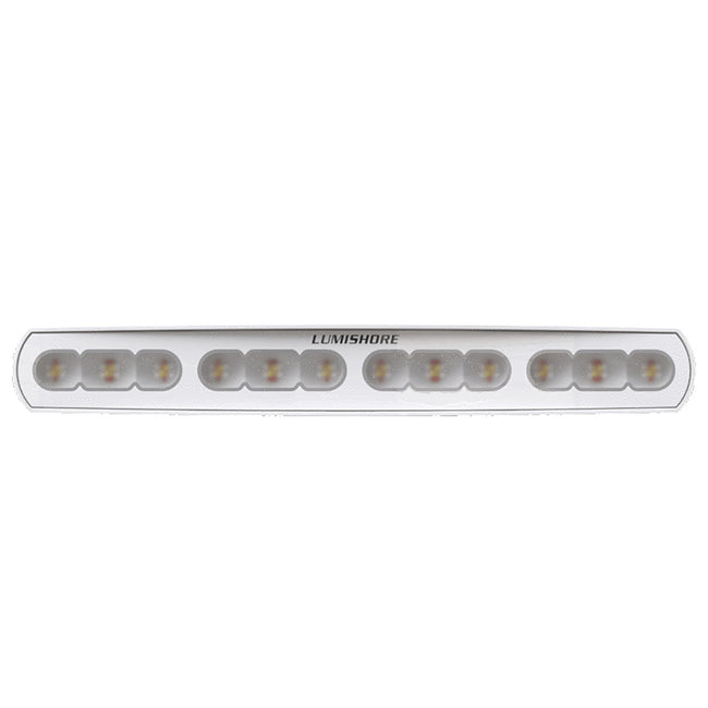 Lumishore's 18" (40cm) Flood Light has an ultra-wide reaching (70° - 90°) oval beam angle for full coverage and custom diffusion optics for consistent and smooth beam colors. Generating a powerful 7,500 fixture lumens to illuminate your boat deck and beyond.